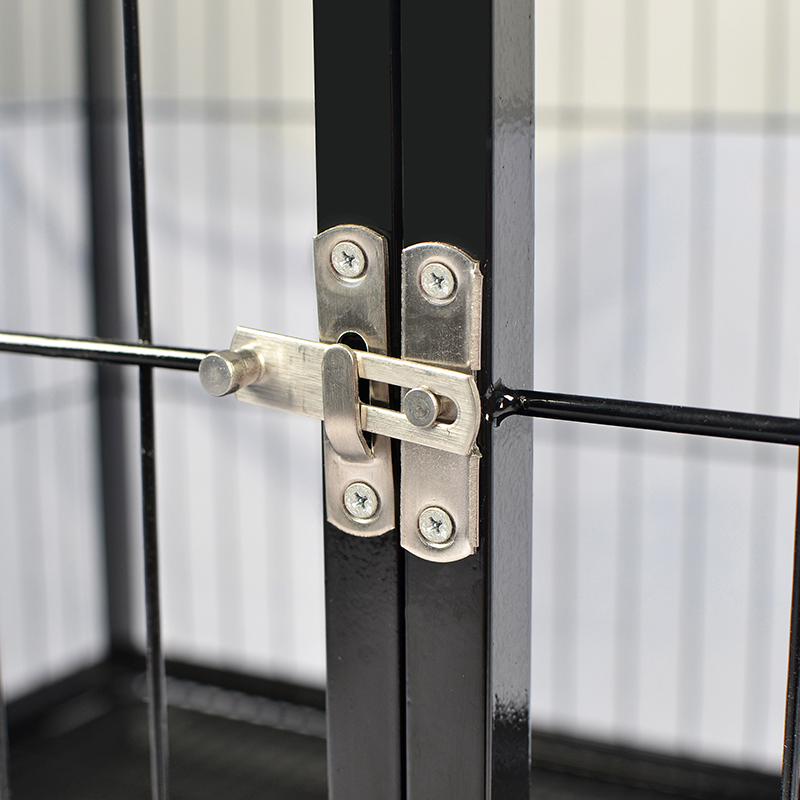 1. Protezione a doppia sicurezza: con il design a doppia porta (porta della porta d'ingresso), la gabbia per cani in metallo si apre e si chiude senza intoppi e si blocca in modo sicuro, il che rende facile addestrare e uscire il tuo animale domestico e garantisce anche la sicurezza del tuo cane.
