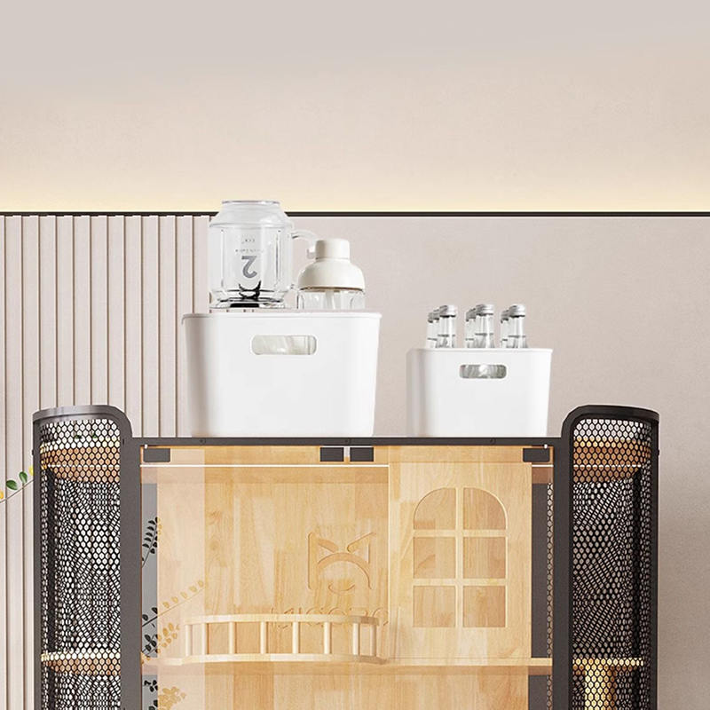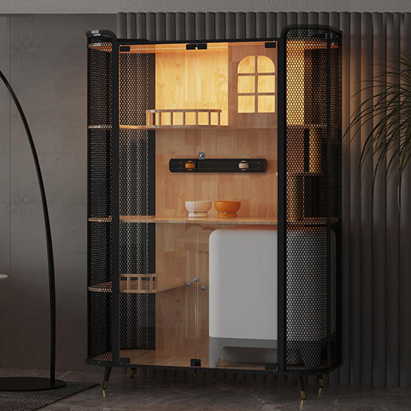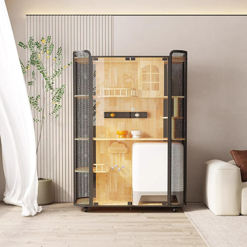 1. Materiali di qualità: la struttura della casa di gatto in legno è l'acciaio di vetro temperato in legno di gomma